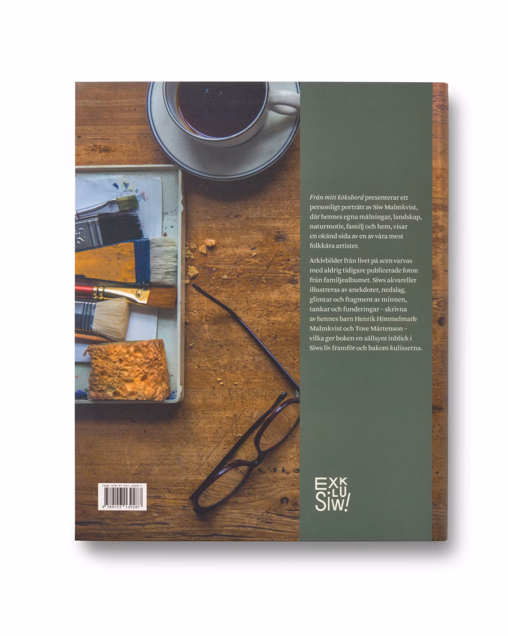 Från mitt köksbord presenterar ett personligt porträtt av Siw Malmkvist, där hennes egna målningar, landskap, naturmotiv, familj och hem, visar en okänd sida av en av våra mest folkkära artister. Arkivbilder från livet på scen varvas med aldrig tidigare publicerade foton från familjealbumet. Siws akvareller illustreras av anekdoter, nedslag, glimtar och fragment av minnen, tankar och funderingar – skrivna av hennes barn Henrik Himmelmark-Malmkvist och Tove Mårtenson – vilka ger boken en sällsynt inblick i Siws liv framför och bakom kulisserna. Boken finns även osignerad för 350:-